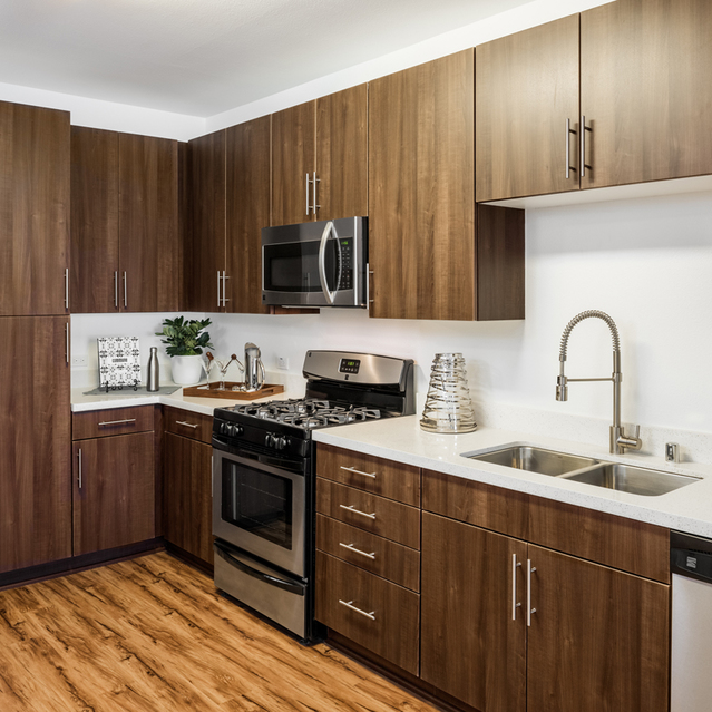 900 S Figueroa St Los Angeles CA 90015. Chef-inspired kitchens with custom cabinetry and quartz countertops.